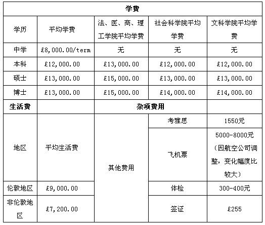 去英國留學費用問題是很多家長和學生非常關(guān)心的,下面是英國留學小編給大家整理的2013年英國留學費用一覽表,希望對大家有所幫助。