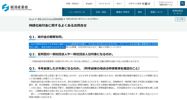 關于「持続化給付金」的申請相關問題咨詢,有意向申請的朋友請在日本經(jīng)濟產業(yè)省官網(wǎng)查詢。
