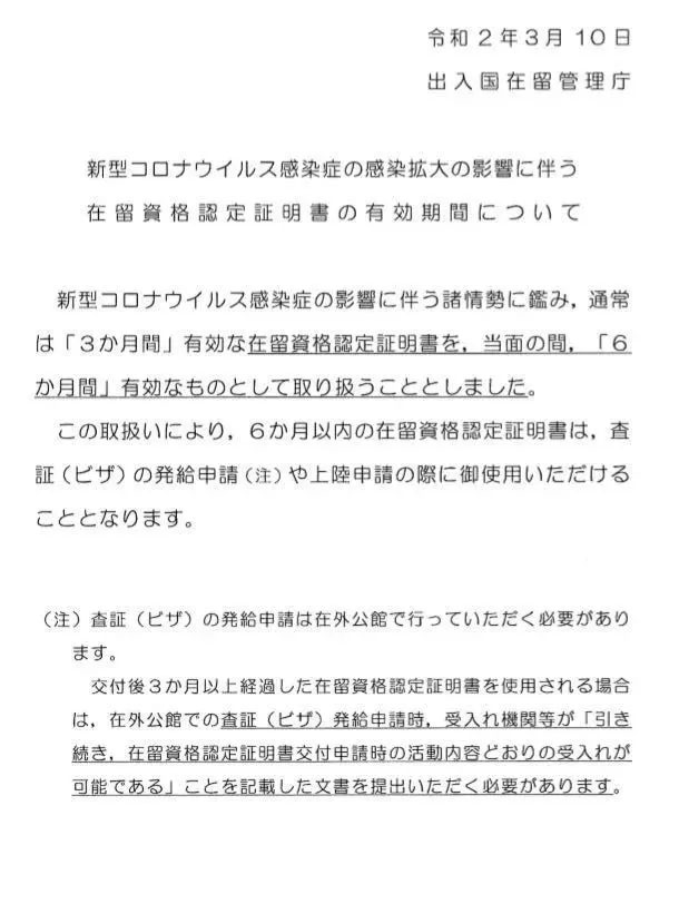 昨天,日本入國管理局更新了一系列面向外國人的簽證政策,這次的新政則是只要是2019年10月1日到2021年1月29日之間發(fā)行的在留資格認定書,有效期延至入國限制解除的6個月內或2021年4月30日。