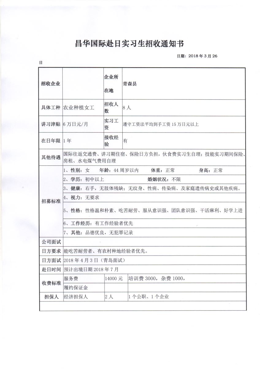 赴日女勞工招聘