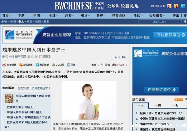 不久前,朝日新聞英文網(wǎng)報道稱,據(jù)了解,在東京、大阪兩大城市及周邊地區(qū)的私立醫(yī)院中,至少有217名獲得資格認證的外國護士。值得關(guān)注的是,在這217名護士中,183名護士來自中國。并且,據(jù)報道,來自中國的“白衣天使”數(shù)量正在增加。