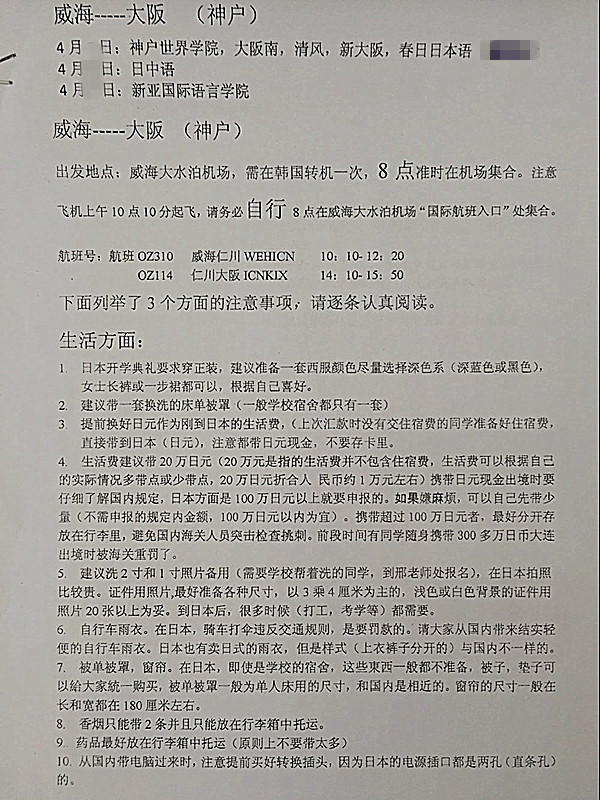 經(jīng)過昌華外語學(xué)校精心組織培訓(xùn)歷經(jīng)半年左右的時間,我校2016年4月赴日留學(xué)的128名同學(xué)簽證今天順利全部下達。祝福所有的同學(xué)們在理想的國度,放飛夢想、遨游天空?,F(xiàn)將赴日時間安排以及所需用品發(fā)給大家,特別注意不同的學(xué)校出發(fā)時間不同,請大家注意查收及早準(zhǔn)備。屆時機場匯合,學(xué)校老師會提前到機場,日本學(xué)校老師會在日本機場接機。請各位同學(xué)及家長放心。